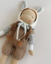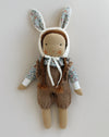 This girl doll comes with a handknitted alpaca jumpsuit, a shirt and a bunny bonnet.